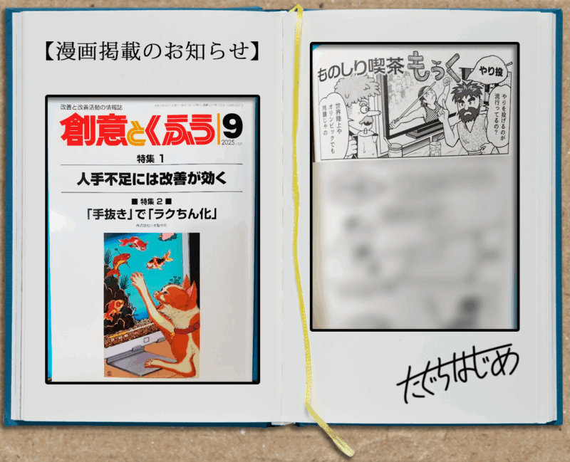 「創意とくふう」9月号に漫画が掲載! 2025年9月5日 情報月刊誌「創意とくふう」で連載中の雑学漫画「ものしり喫茶もっく」今回のネタは「やり投」です。 なるほど!へぇ!な4ページ、職場などで見かけましたら是非ご一読くださいませ♪(※一般の書店では流通していない本です)